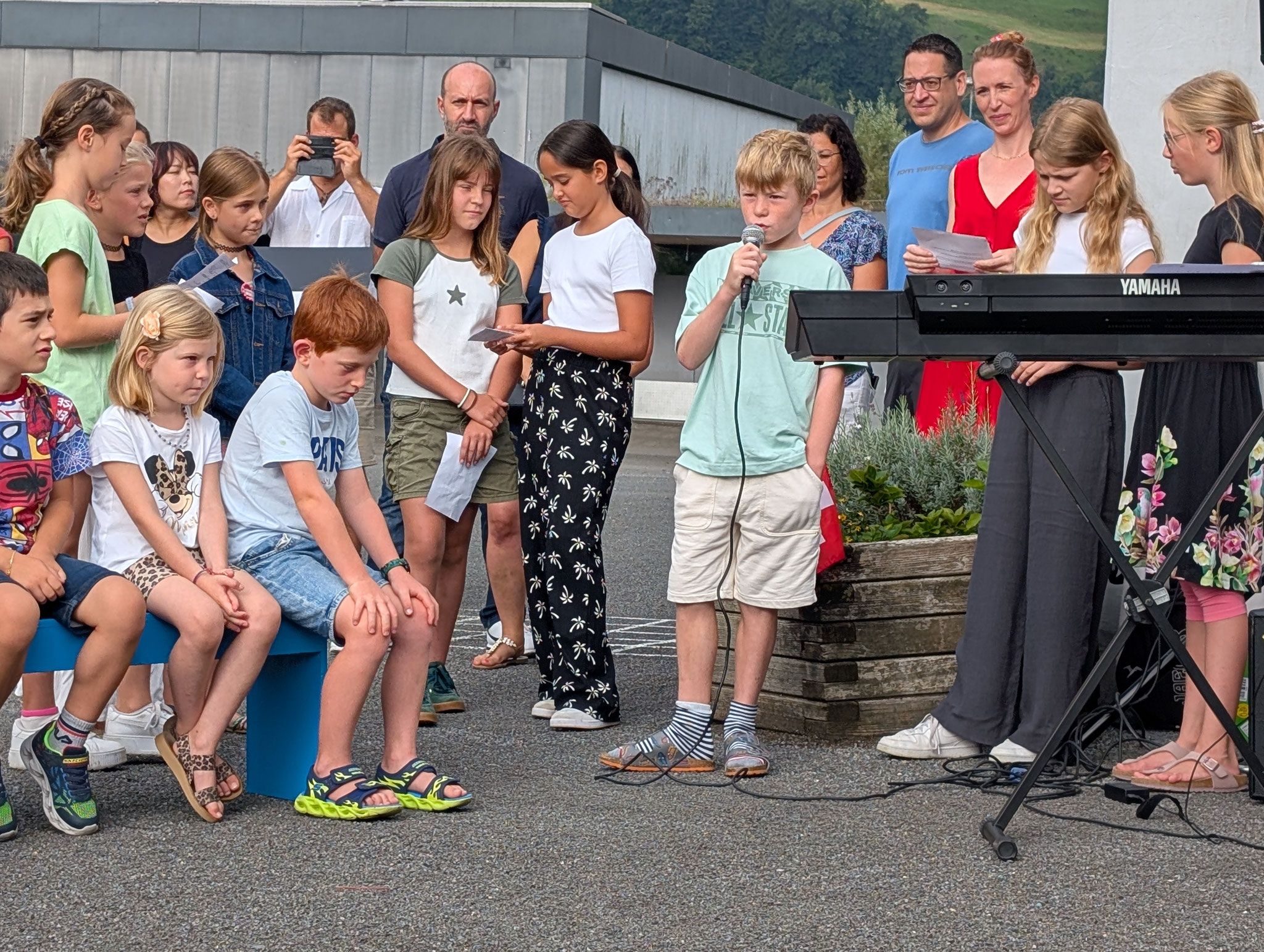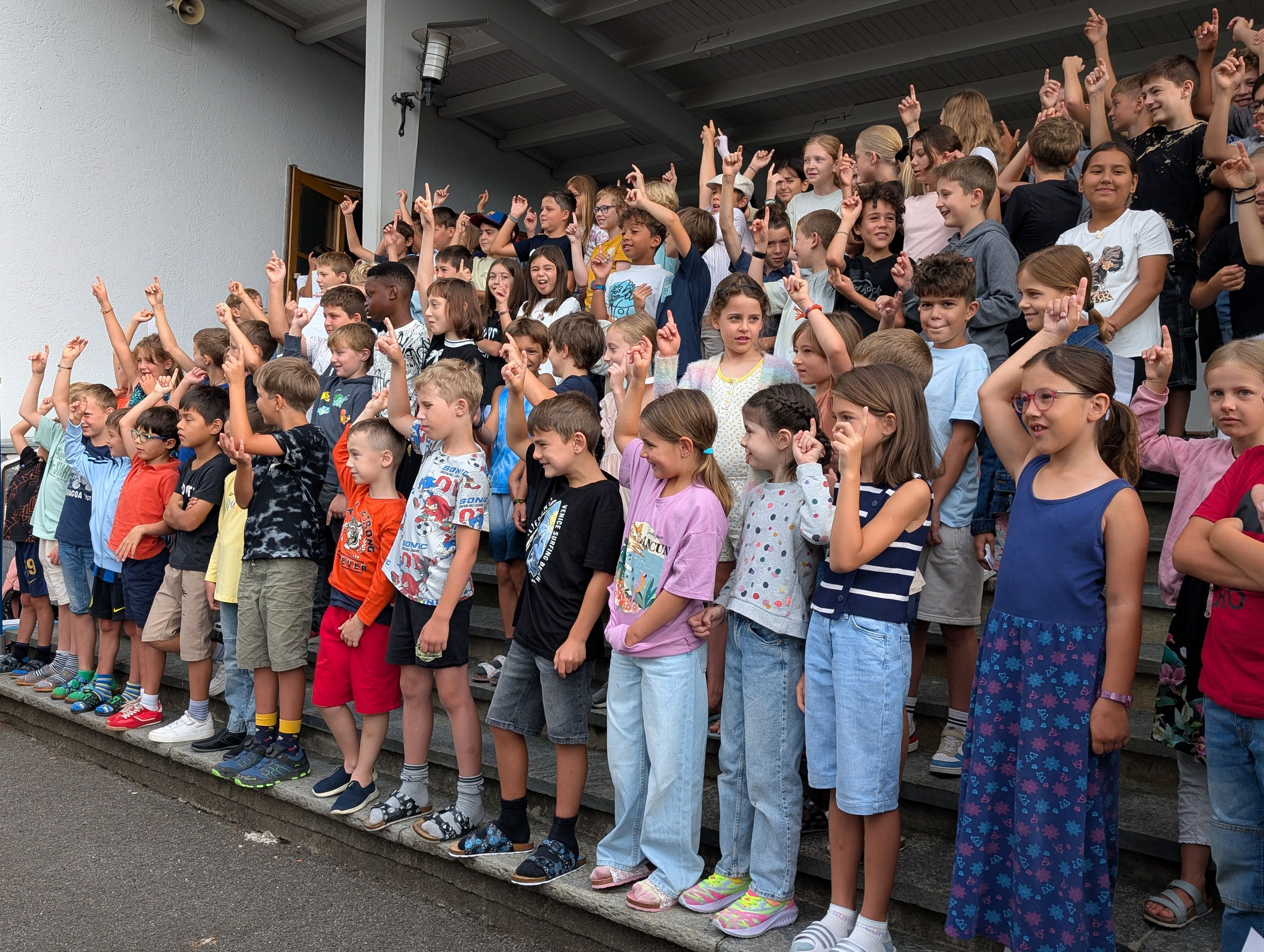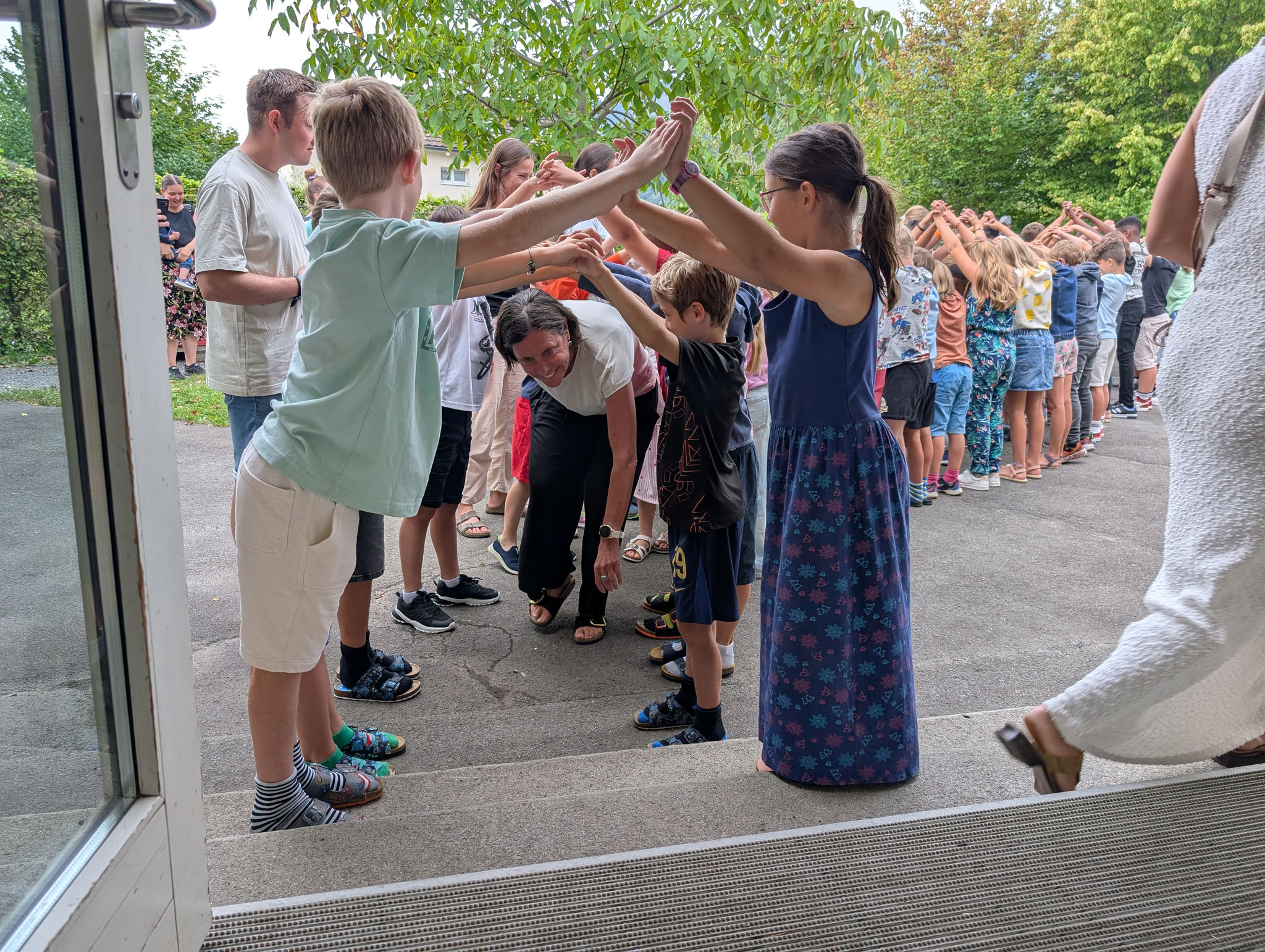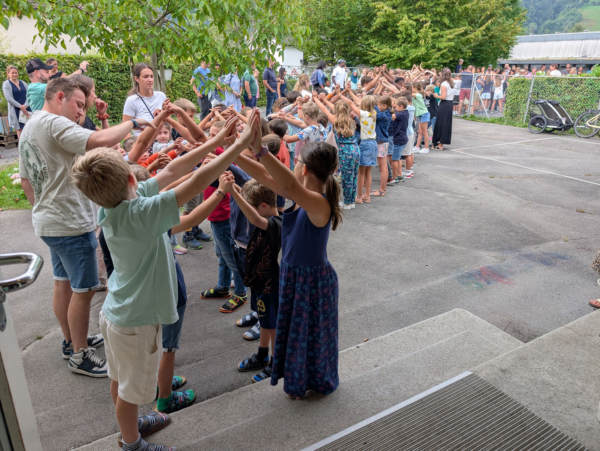 Wie jedes Jahr haben wir das neue Schuljahr mit einem schönen Ritual begonnen. Mit unserem traditionellen Schulstart-Lied stimmten wir uns gemeinsam ein und hiessen die neuen Erstklasskinder herzlich willkommen. Mit guten Wünschen aller Klassen und einem langen, liebevoll gebildeten Tunnel fanden sie ihren Weg in ihr neues Schulzimmer.